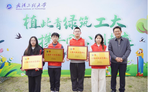 学校党委书记汪伟为学院花少绿行环保团队颁授“公益环保示范团队”奖牌,勉励同学们以他们为榜样,结合自身所学积极践行绿色发展理念,为美丽中国、美丽工大建设贡献智慧和力量。