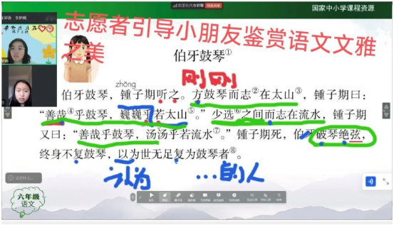 寒冬聚首“云”课堂,志愿者化身知识使者,用赤心热情,去呵护那片待放的“花朵”,每一位小朋友得到专属教导。