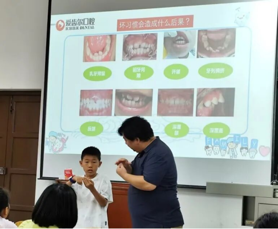 课程尾声,志愿者分享自己的正畸经历,推荐平价护齿工具,让大家觉得科学护齿既简单又实用,轻松养成爱牙好习惯。