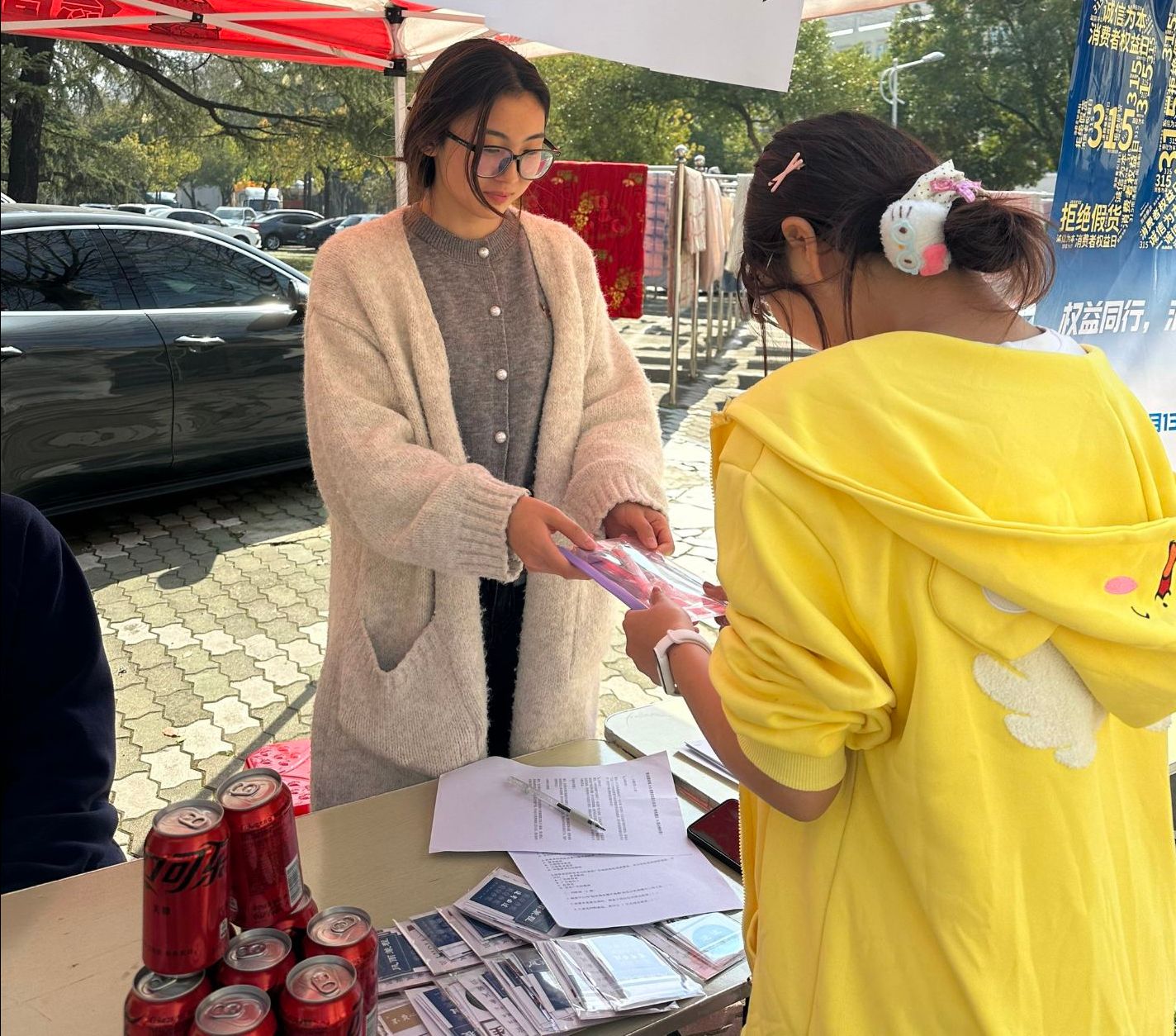 活动现场设置三个环节。在“真假商品辨别区”,志愿者展示常见日用品、食品的真伪对比样本,通过外包装细节、防伪标识等特征讲解识别技巧,并邀请学生现场实践操作;“维权知识快问快答”环节以抢答形式展开,题目涵盖《消费者权益保护法》重点条款、网购维权流程等内容,现场气氛热烈;“维权案例分析”选取校园贷诈骗、网购纠纷等典型案例,由学生代表分组讨论解决方案,深化学生对维权途径的认知。整场活动互动频繁,师生在轻松活跃的氛围中加深了对消费维权的认知。