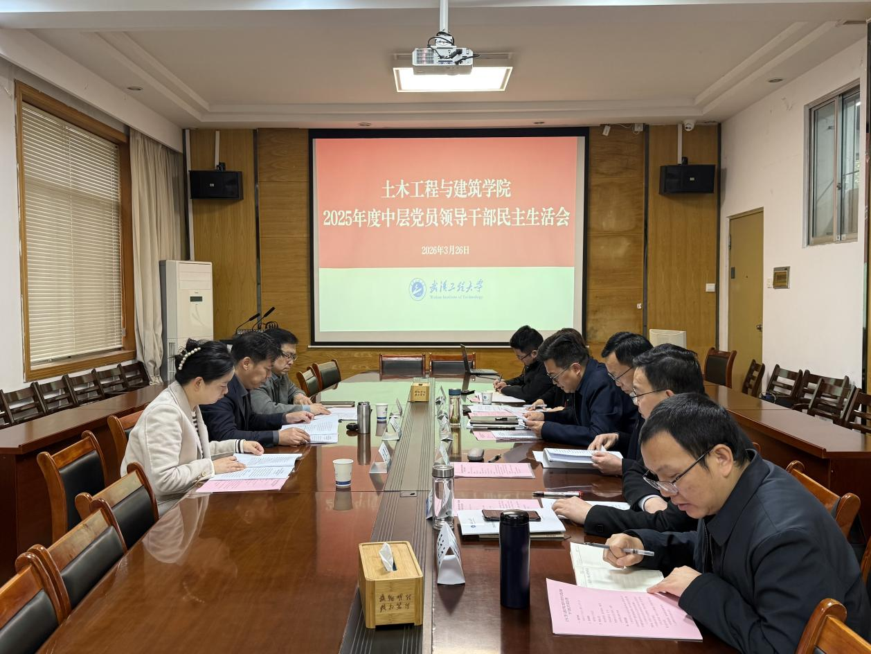 (通讯员 肖咏霓)3月26日上午,土木工程与建筑学院在武昌校区建创楼213会议室召开2025年度中层党员领导干部民主生活会。学校第八督导组组长、校党委常委、宣传部部长韩高军,校纪委副书记任兵,党政办公室主任科员沈霁月到会指导。会议由学院党委书记王金领主持,学院全体班子成员参加会议。