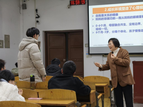 在讲解如何创造鲜活人生时,黄老师延续了深入浅出、智慧风趣的授课风格,引用积极心理学相关理论,鼓励同学们不仅要学会处理负面情绪,更要主动构建积极的人际关系与人生意义。她强调,真正的幸福并非来自与他人的比较,而是源于积极的心态和对生活的主动建构,要善于从细微处发现美好,在关爱他人的过程中成就自己。