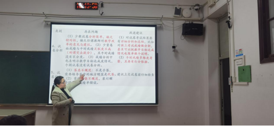 会上,屠艳平老师结合2025年学院考核情况,围绕“重视教学”“试卷命题及评阅”“教学事故认定”三个方面进行了系统汇报与深入剖析。她指出,学院构建了包括教学督导、学院领导、系主任、同行评议、学生评教在内的多元教学评价体系,课堂教学、实习环节、毕业设计等各环节均有明确的评价标准与改进方向。