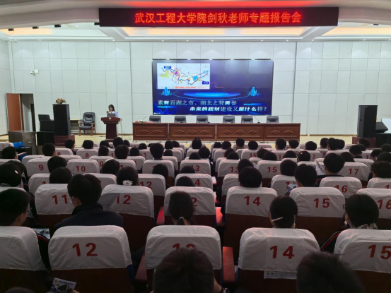 座谈期间,隗剑秋以《“筑”就一城繁华,“规划”美好未来》为题,向洪湖一中高一、高二学子作专题讲座。讲座结合洪湖市区建设规划案例,从行业发展角度,深刻阐释建筑与城乡规划专业内涵、学习路径与职业前景。讲座现场气氛热烈,学生们纷纷表示对建筑规划领域产生了浓厚兴趣。