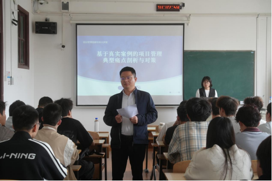 讲座由土木工程与建筑学院副院长白桃主持。他指出,随着工程建设项目日益复杂,项目管理标准化已成为行业高质量发展的关键。高校作为人才培养的摇篮,需紧跟行业发展趋势,将国家标准与教学实践深度融合,培养学生的系统化管理思维。他希望本次活动能为学生提供接触行业前沿的机会,助力其成长为适应新时代需求的复合型工程人才。